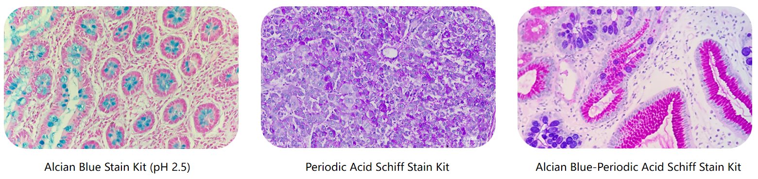 · Alcian Blue-Periodic Acid Schiff Stain Kit (AB-PAS) – Differentiates neutral and acidic mucins in a single slide.