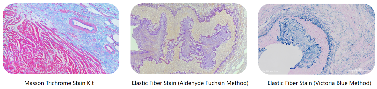 · Elastic Fiber Stain Kit – Highlights elastic fibers in blood vessels, skin, and lungs.